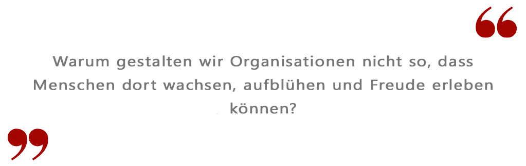 Mir kam damals das Bild, dass Menschen morgens ihre Leidenschaft an der Garderobe abgeben, arbeiten – und abends wieder Mensch werden. Das hat mich tief bewegt. Ich habe mich gefragt: Warum gestalten wir Organisationen nicht so, dass Menschen dort wachsen, aufblühen und Freude erleben können?