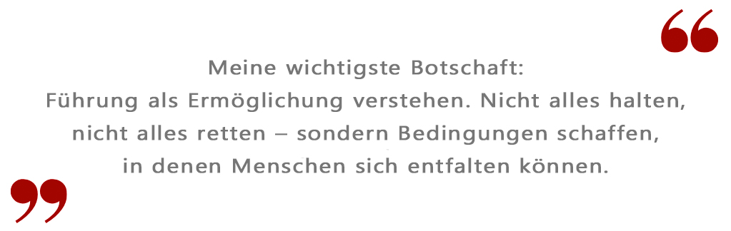 Führung als Ermöglichung verstehen. Nicht alles halten, nicht alles retten – sondern Bedingungen schaffen, in denen Menschen sich entfalten können.