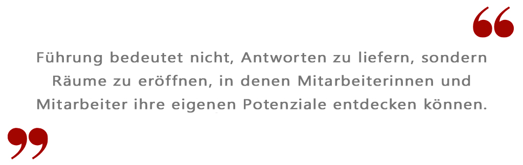 Führung bedeutet nicht, Antworten zu liefern, sondern Räume zu eröffnen. Räume, in denen Mitarbeiterinnen und Mitarbeiter ihre eigenen Potenziale entdecken können. Oft heißt es: „Hole den Menschen dort ab, wo er steht.“ Doch wie gelingt das konkret? Und warum reicht Wertschätzung allein nicht aus, um Entwicklung zu ermöglichen?