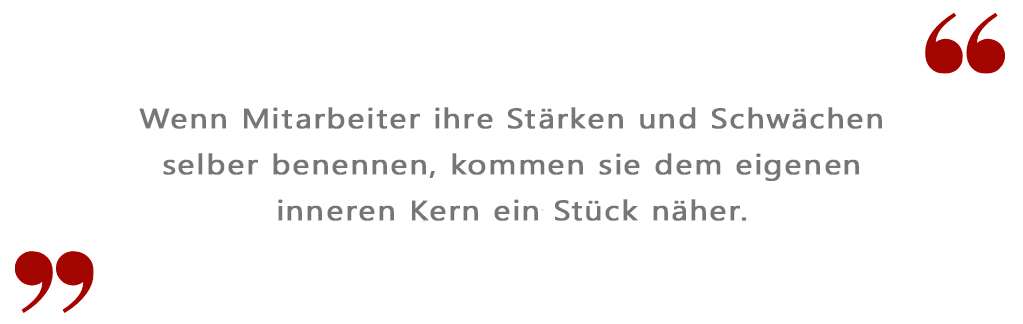 Jede Mitarbeiterin und jeder Mitarbeiter hat Fähigkeiten und Stärken, die vielleicht noch nicht vollständig sichtbar sind. Wenn jemand diese selbst benennt, kommt er oder sie dem eigenen inneren Kern ein Stück näher. Für die Führungskraft bedeutet das, diesen Prozess aufmerksam zu begleiten und das Gesagte nicht nur anzuhören, sondern in seiner Bedeutung wirklich anzuerkennen.